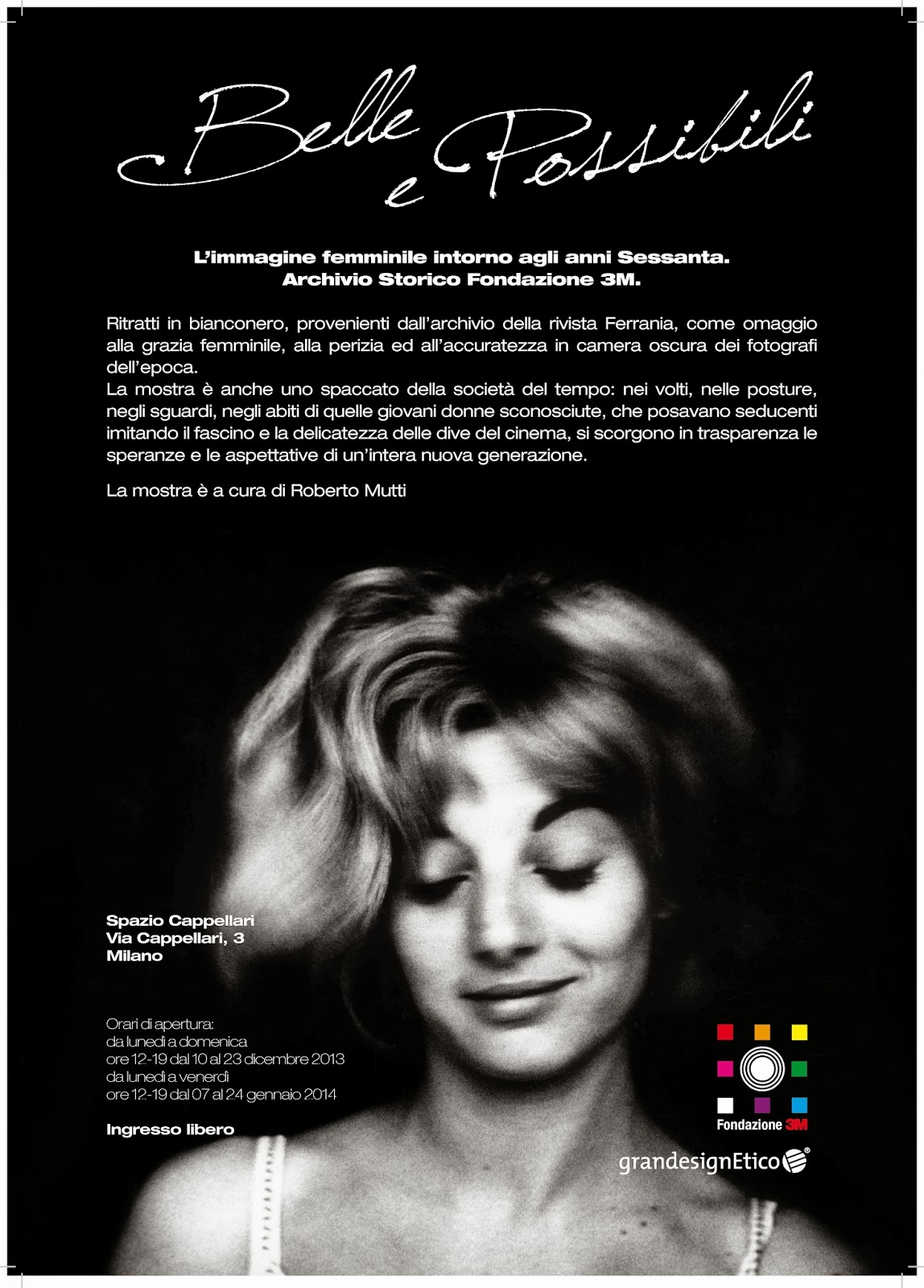 Il 2013 per la Fondazione 3M si chiude all’insegna di uno sguardo rivolto al passato e alle donne, forse quest’ultimo rivolto al futuro sul quale anche il Censis scommette per il 2014. L’archivio della rivista “Ferrania” – che dal 1947 al 1967 è stata un importante punto di riferimento per gli appassionati di fotografia – è un tesoretto da cui si possono costantemente ricavare immagini di sorprendente bellezza che sono anche documenti storici ricchi di spunti e di suggestioni. Per questa ragione moltissimi fotografi non professionisti ma dotati di grandi capacità inviavano le loro opere, le migliori delle quali venivano pubblicate e conseguentemente conservate negli archivi della rivista oggi passati a quelli della Fondazione 3M che, acquisendoli, li ha anche ampliamente valorizzati. E’ il caso di “Belle e possibili.